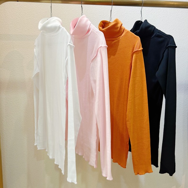 一枚でも重ね着のときにも活躍してくれる、一度着たら病みつきになる着心地のリブタートル。コットンと再生ポリエステルを合わせて、柔らかで尚且つ伸びにくいリブ生地を開発しました。 表に出している肩と脇の縫い目がアクセントになり、一枚で着たときも様になります。 【サイズ】 FREE 着丈 66.0cm 肩幅 41.0cm 身幅 38.0cm 袖丈 57.0cm 袖口幅 9.0cm AH 17.5cm 天幅 20.5cm 衿幅 16.5cm 【素材】 COTTON 50% RECYCLED POLYESTER 50%