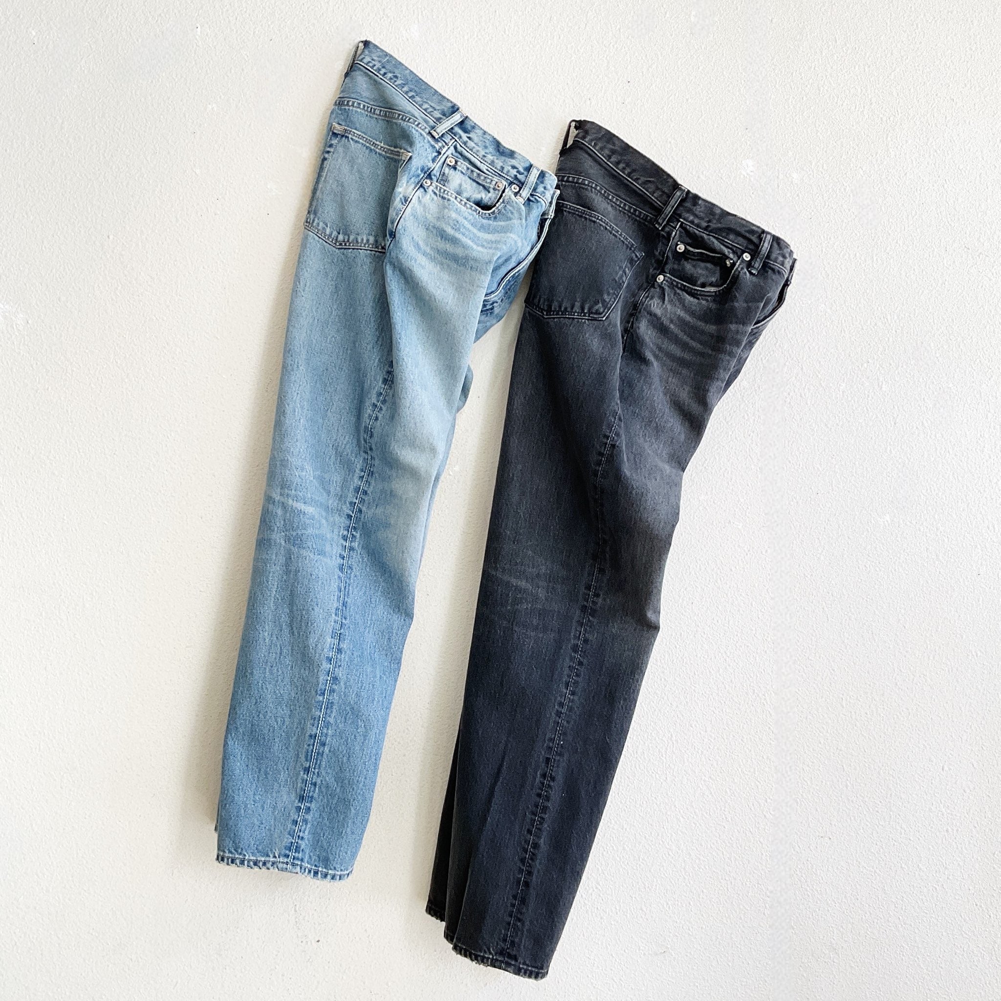 ジャストウエストで履く、セミワイドシルエットのデニムパンツです。