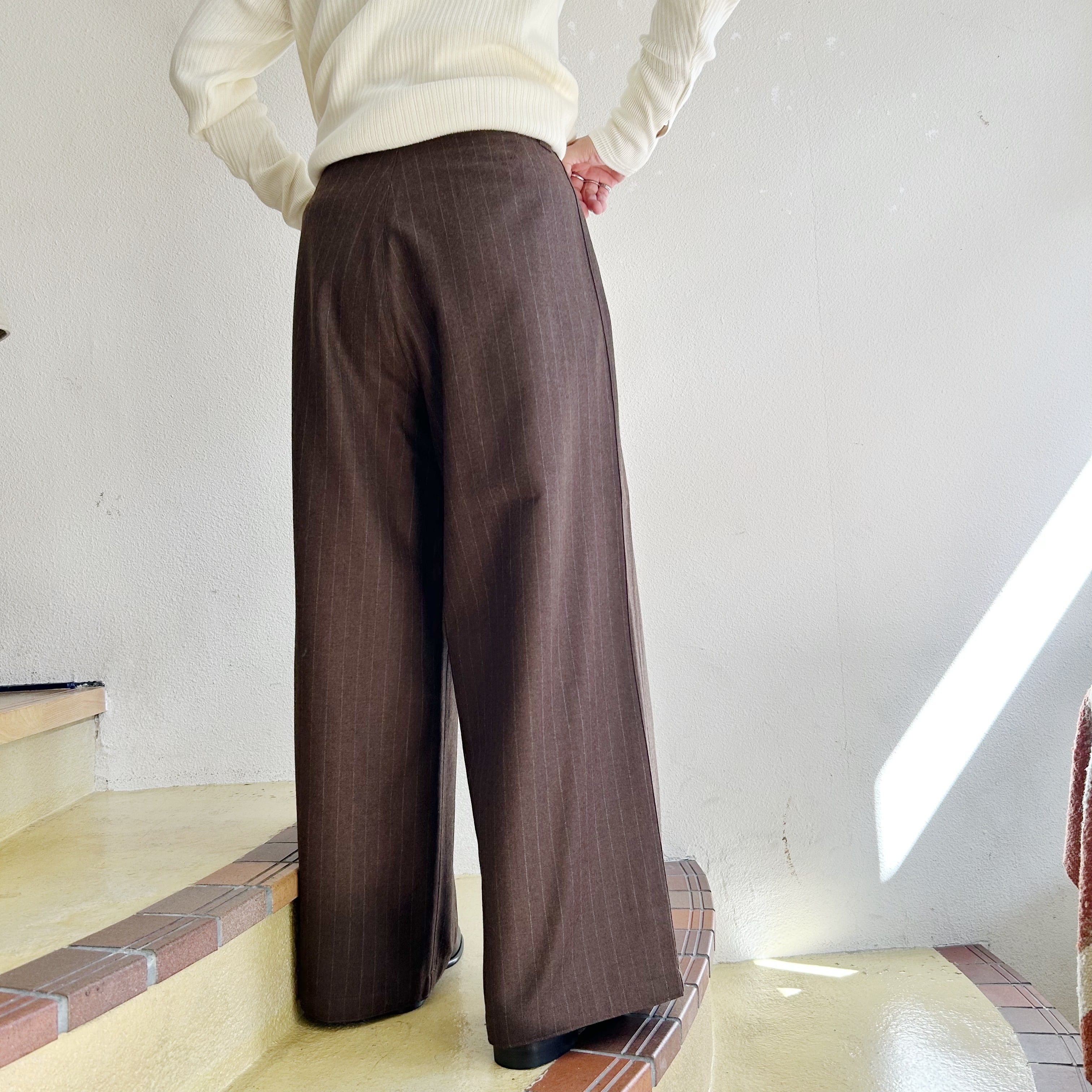 MEYAME/MERINO WOOL STRIPE SIDE LINE WIDE PANTS