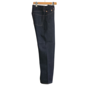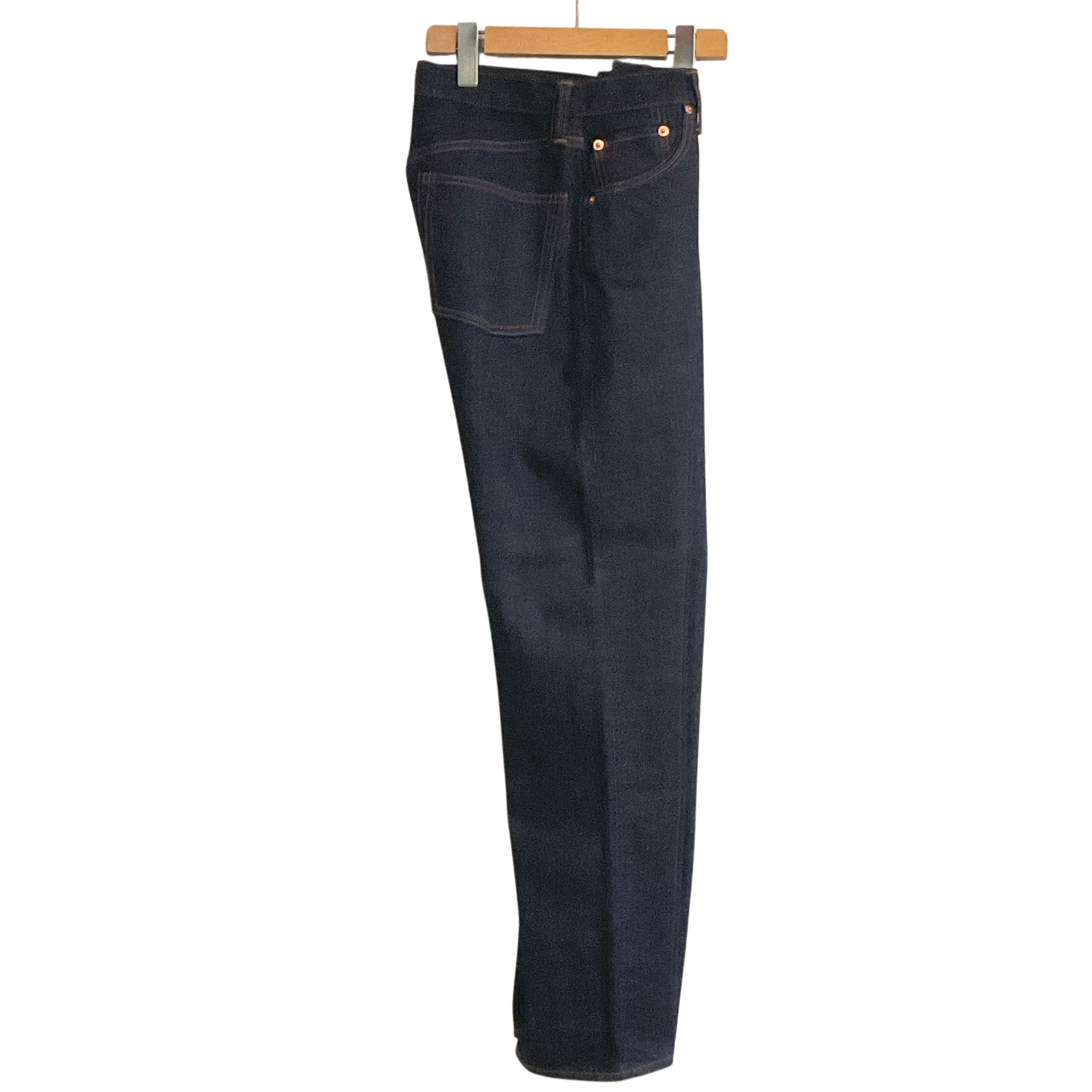 まるでヴィンテージのような細かいシボ感とムラ感が魅力の生地はそのままに、およそ2年の歳月をかけて、シルエットと加工をアップデート。13ozのはきやすい厚さをキープしながら、股上を少し深く、さらにややテーパードだった裾幅からレギュラーストレートになりました。股下の長さもローファーやパンプスを履いた時に綺麗に見える絶妙な長さにし、どんなトップスにも合わせやすいシルエットに。また生地の加工も見直し、環境に負荷の少ないエコな手法にチェンジ。小股からのヒゲを控えめにしてヒゲを入れる箇所を工夫し、上品に仕上げています。着用を重ねるたびにさらなるアタリが生まれる、DARK BLUEも展開。毎日はいていただきたい、ジェネラルにしてエッセンシャルなデニムです。