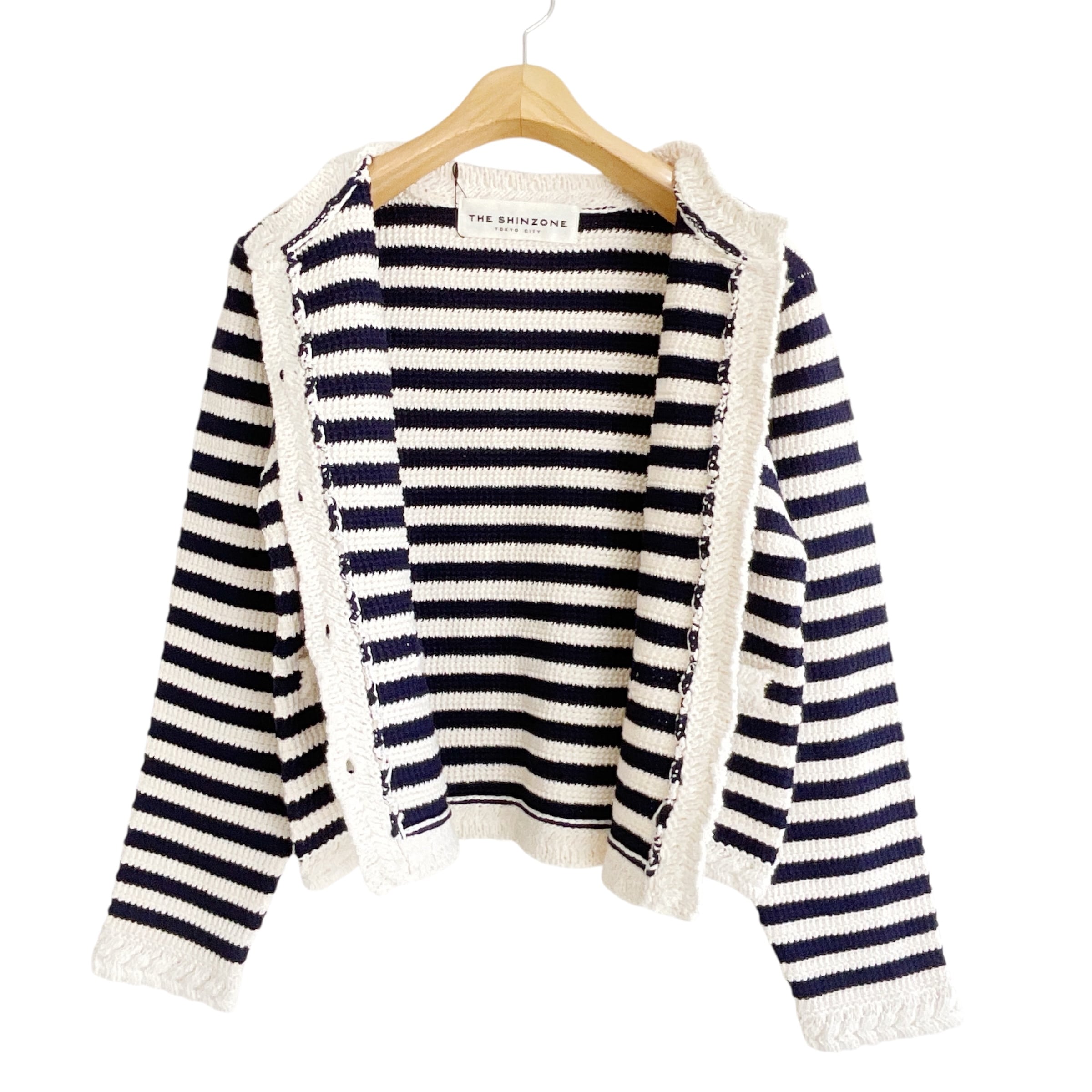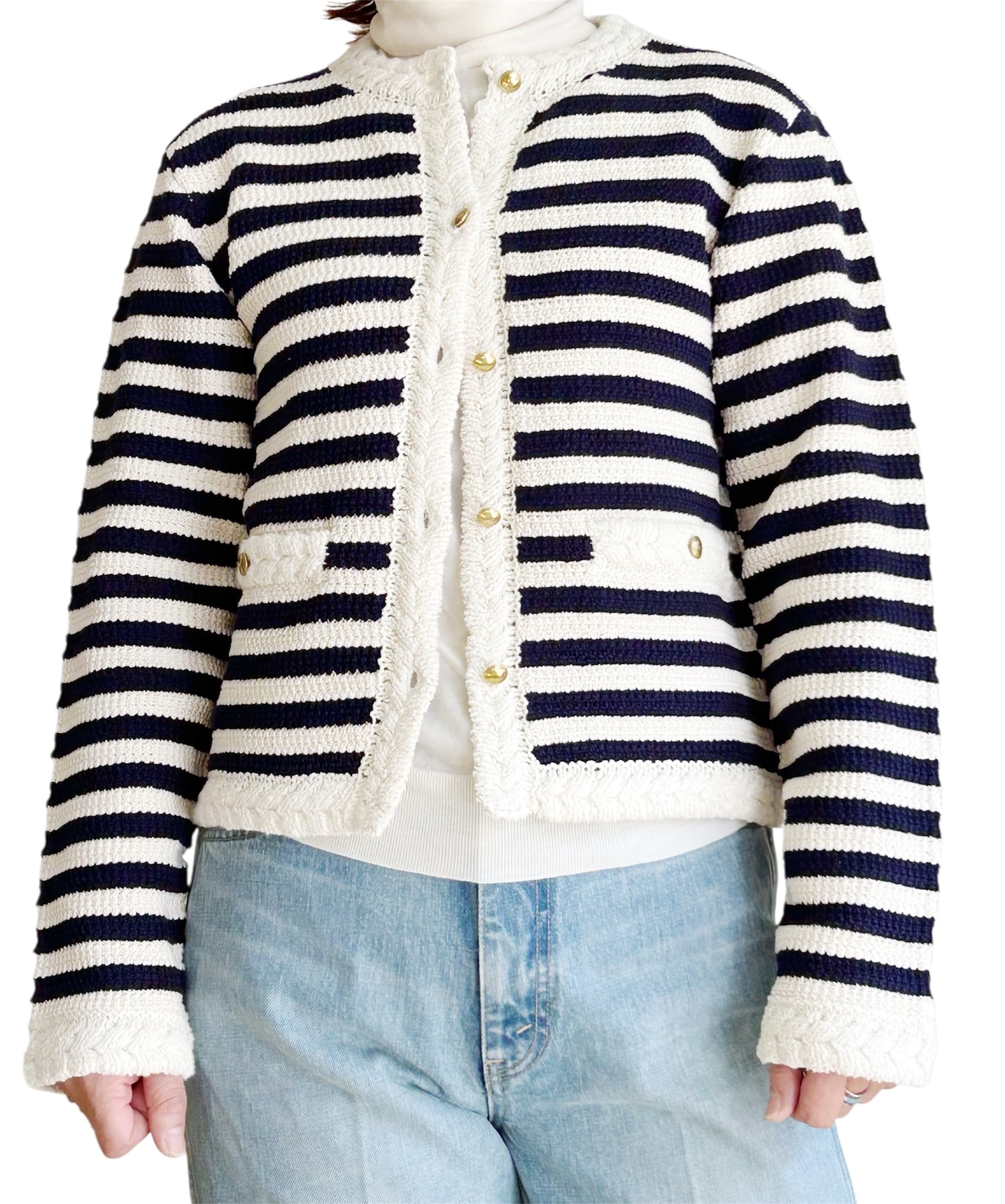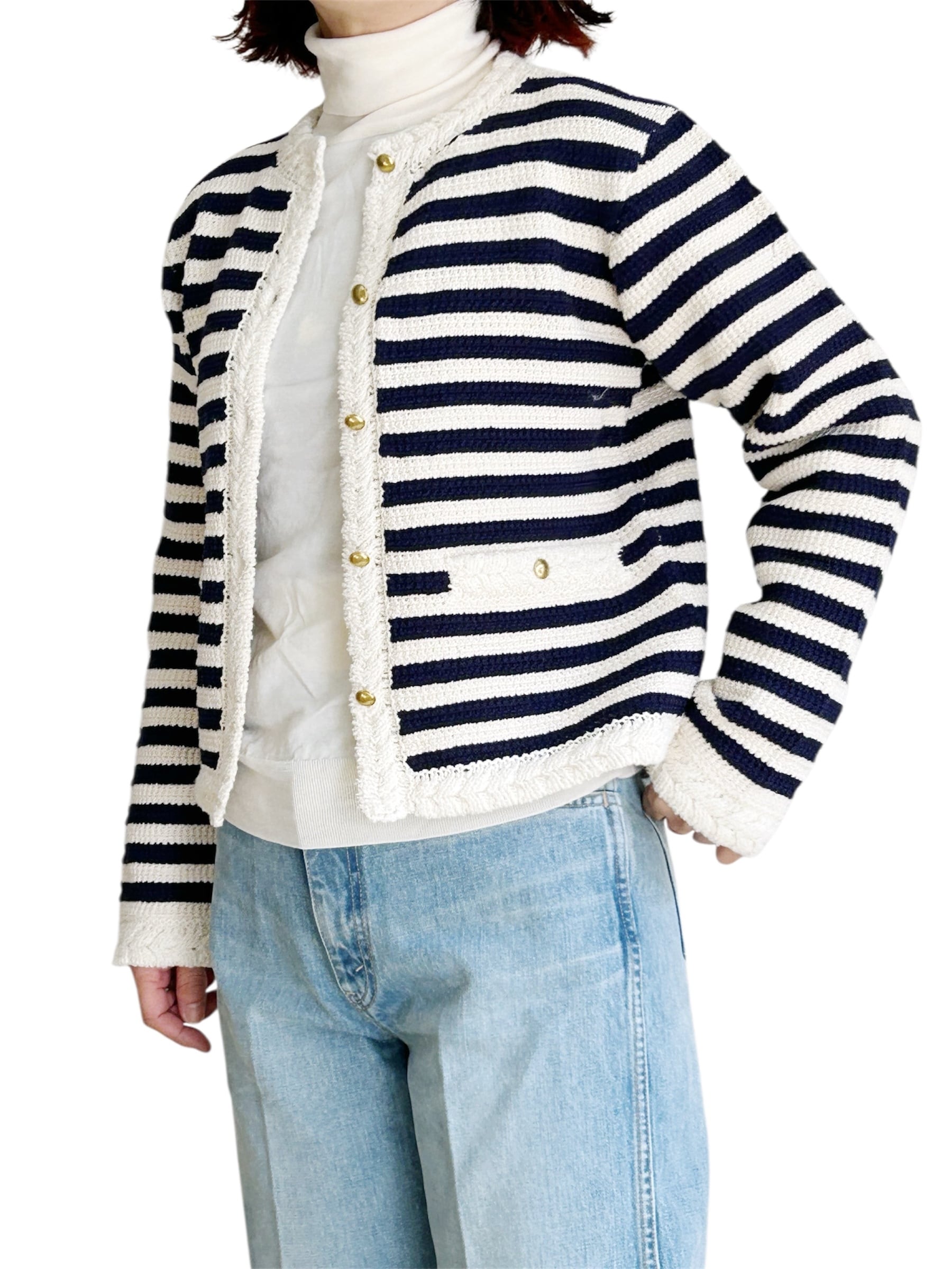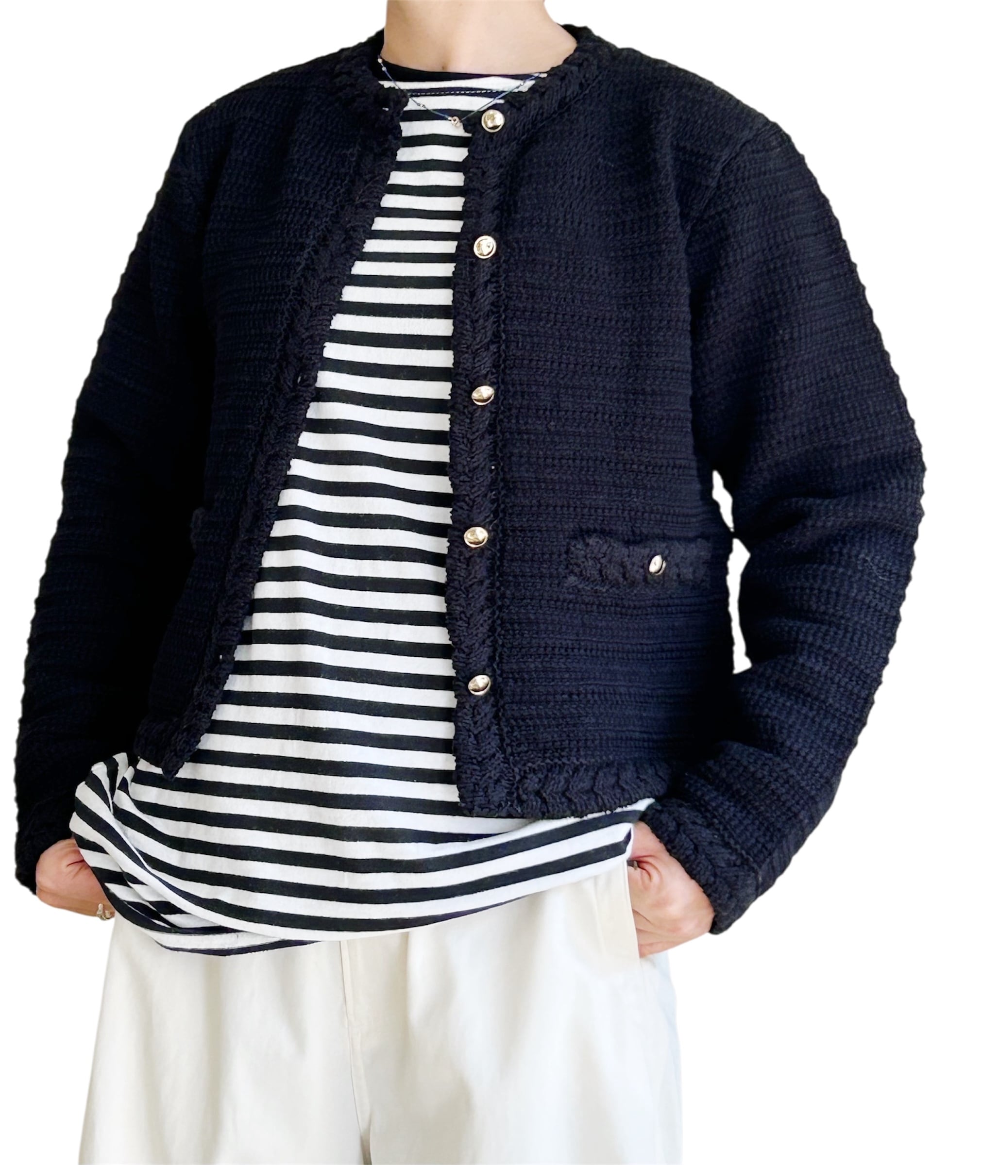 マーセライズコットンを使った、上品な光沢が魅力のニットジャケットです。