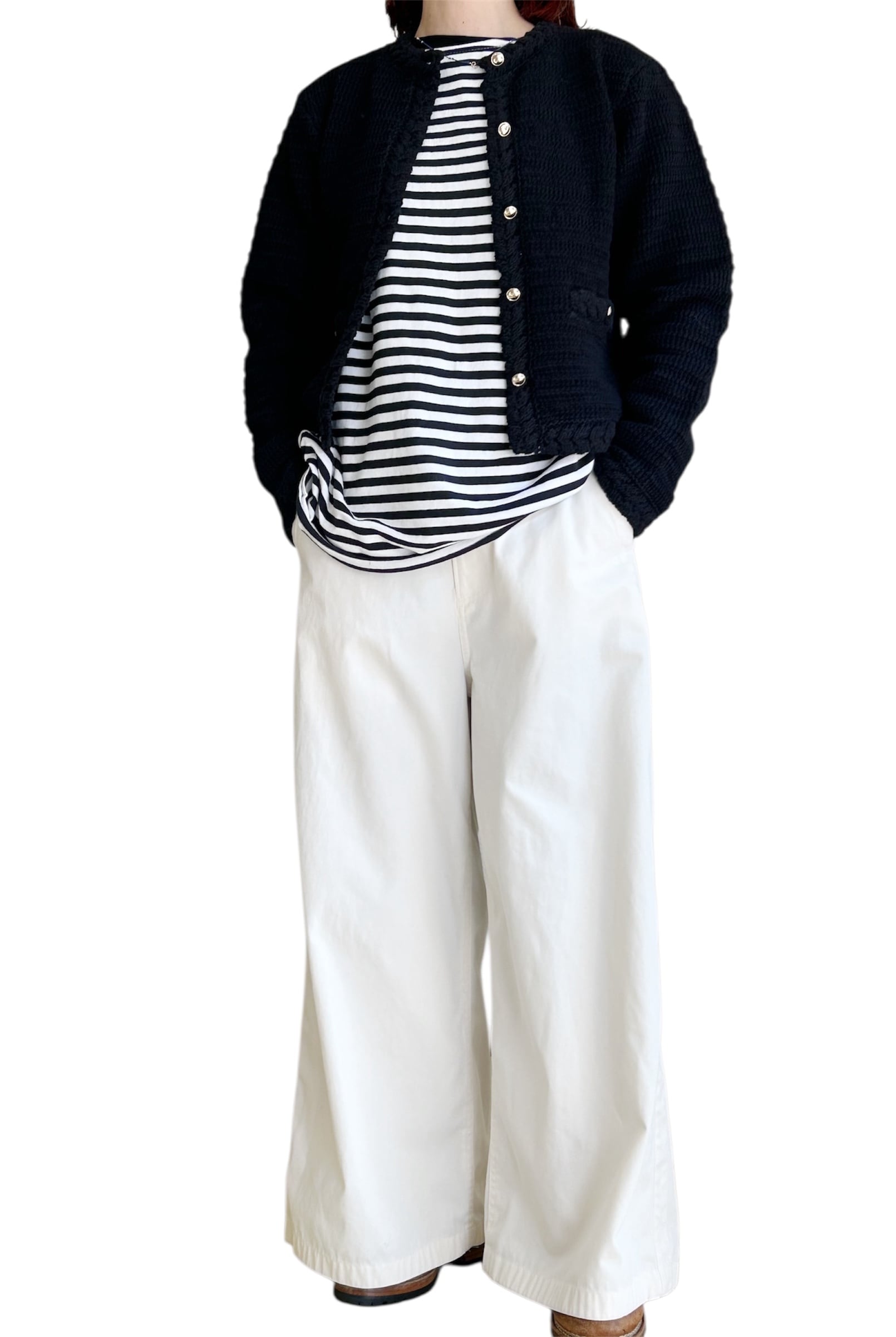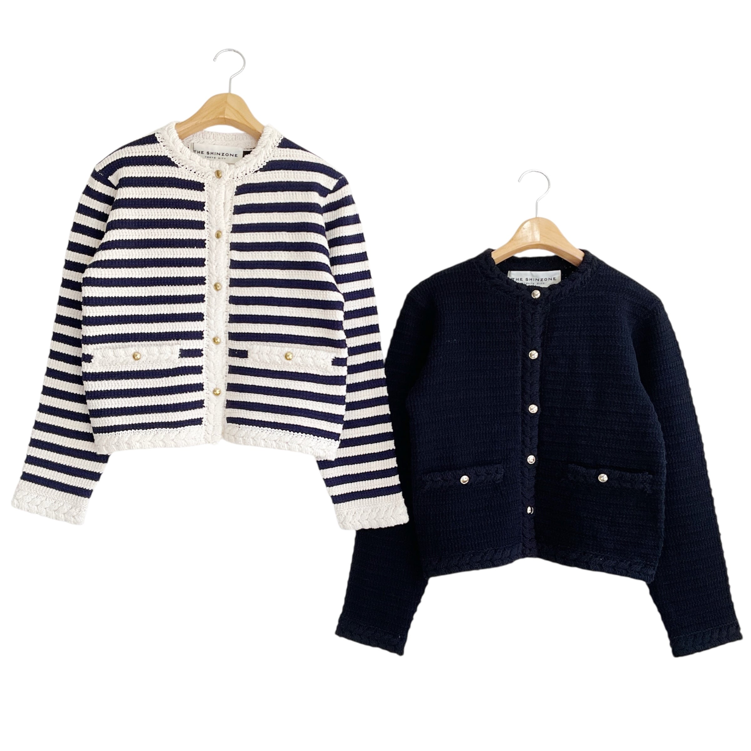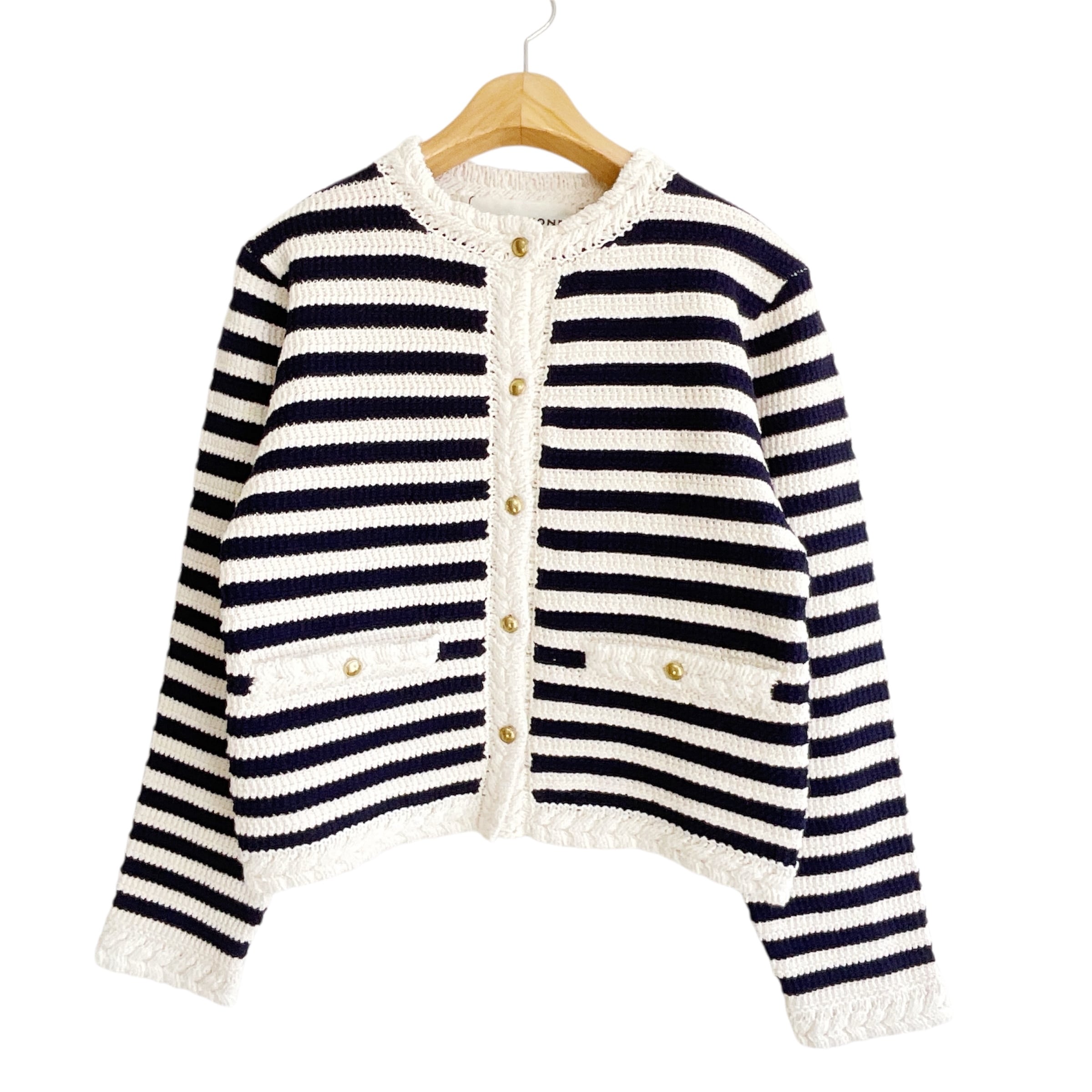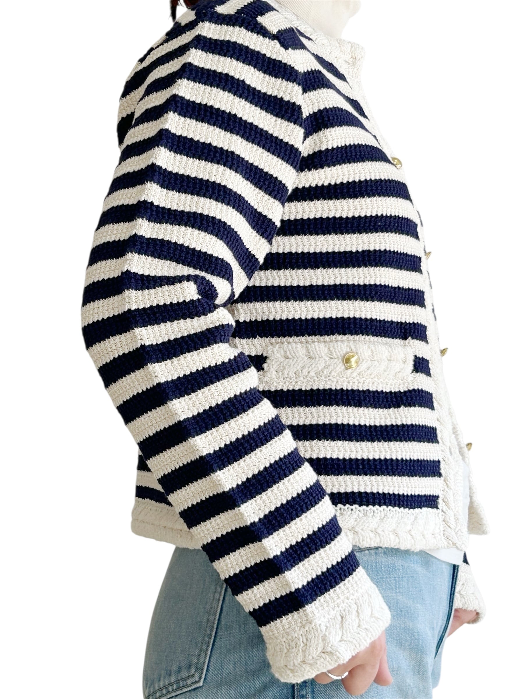 マーセライズコットンを使った、上品な光沢が魅力のニットジャケットです。