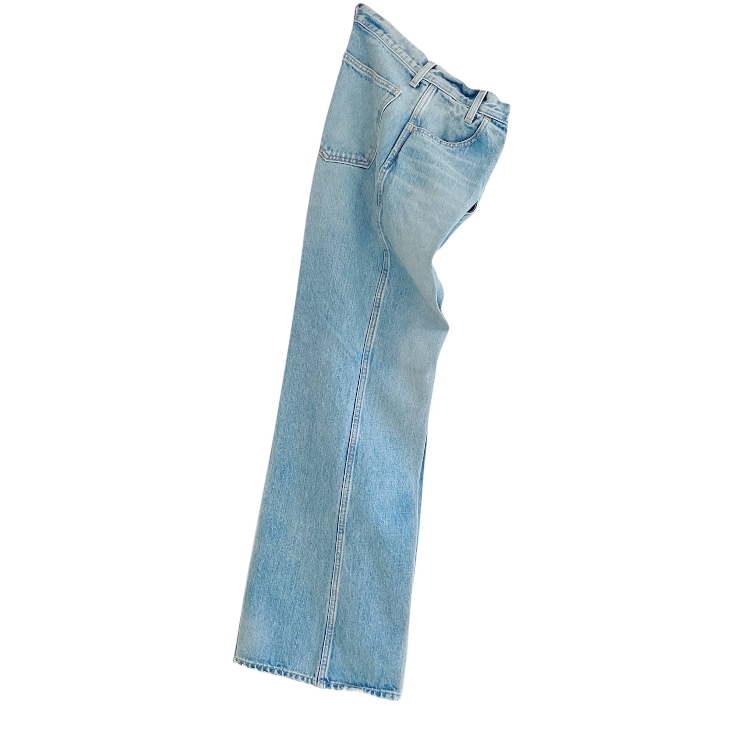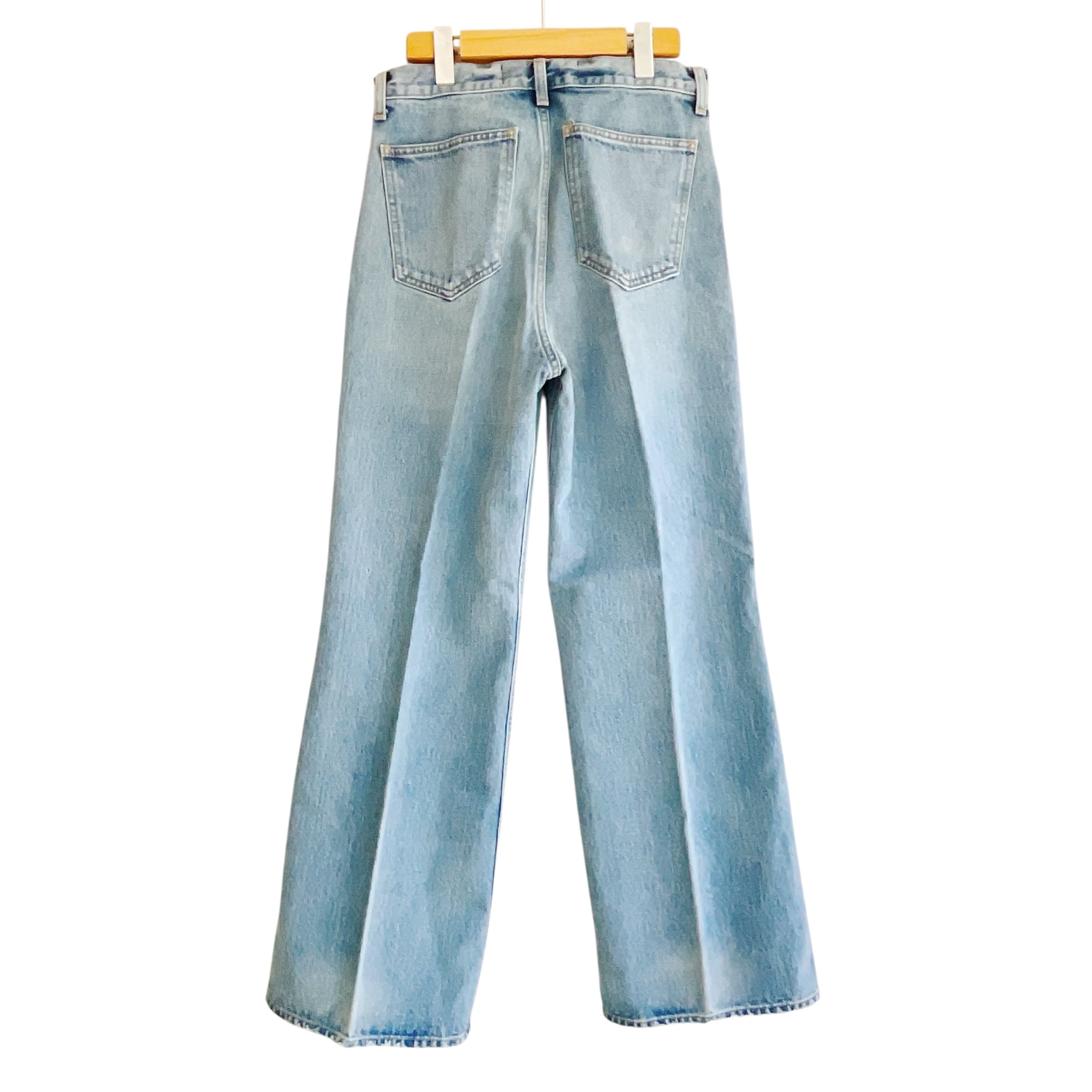 ヨーク無しの仕様にして、ポケットをぐっと上部につけたことでヒップ位置を高く演出。膝で絞ったセミワイドフレアが、美脚効果を生み出します。