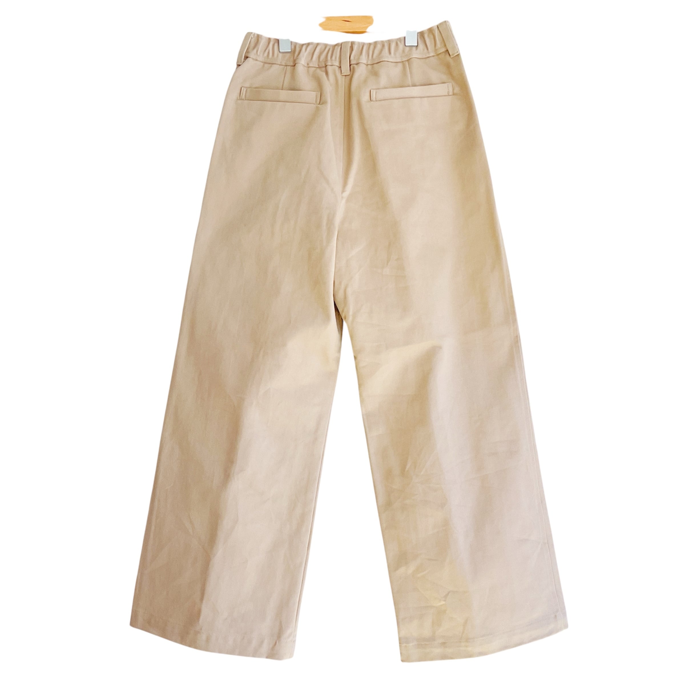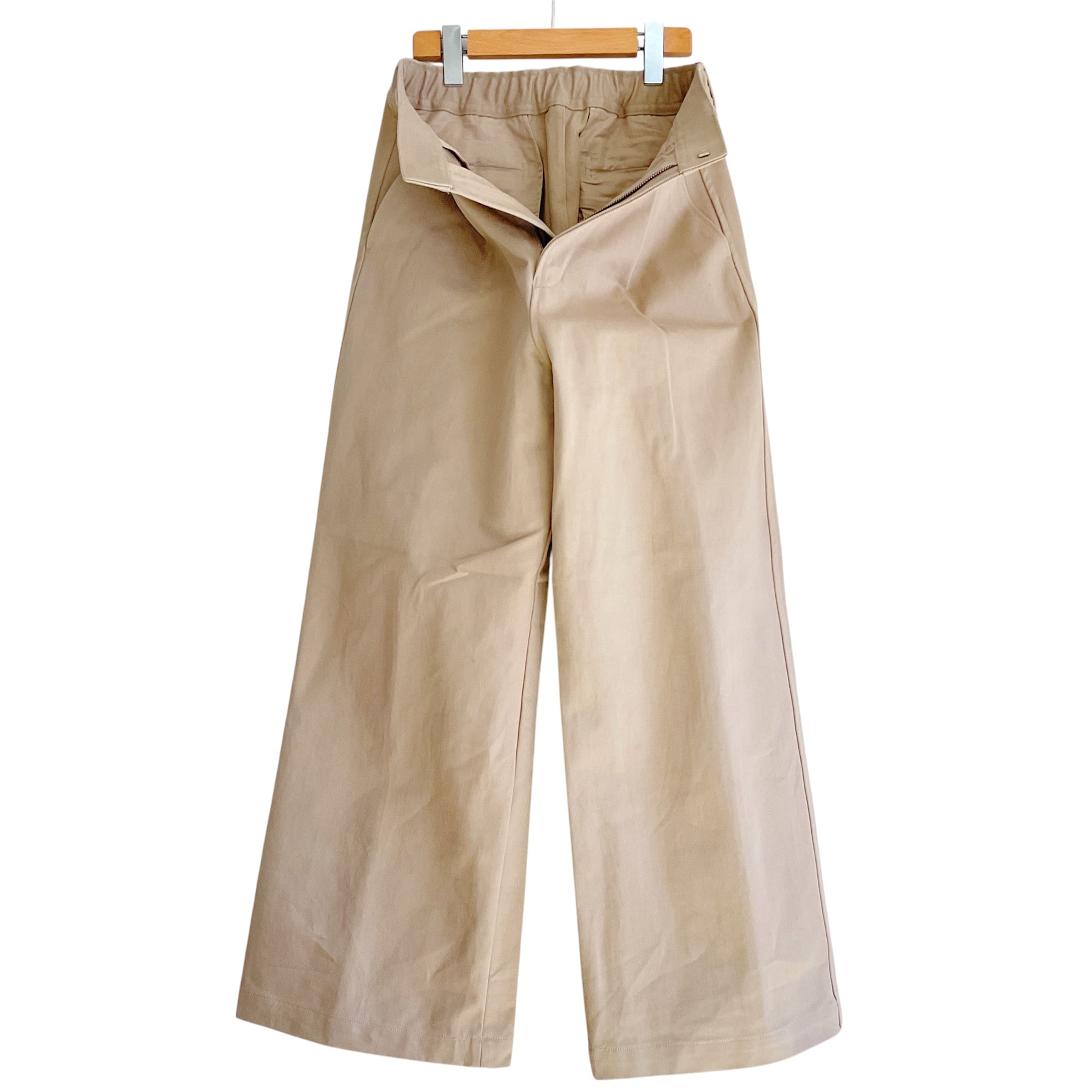 素材は綿の産地、静岡県浜松で織られた太番手のオーガニックコットン糸を使ったカツラギ生地。最後にハリとコシを出すために硬仕上げを施し、ほかにはない独特のタッチと質感に仕上げました。 ウエストは前側をすっきりと仕立て、後ろはゴム仕様で快適なはき心地に。 どんなトップスにも合わせやすく、抜群の存在感を放ちます。