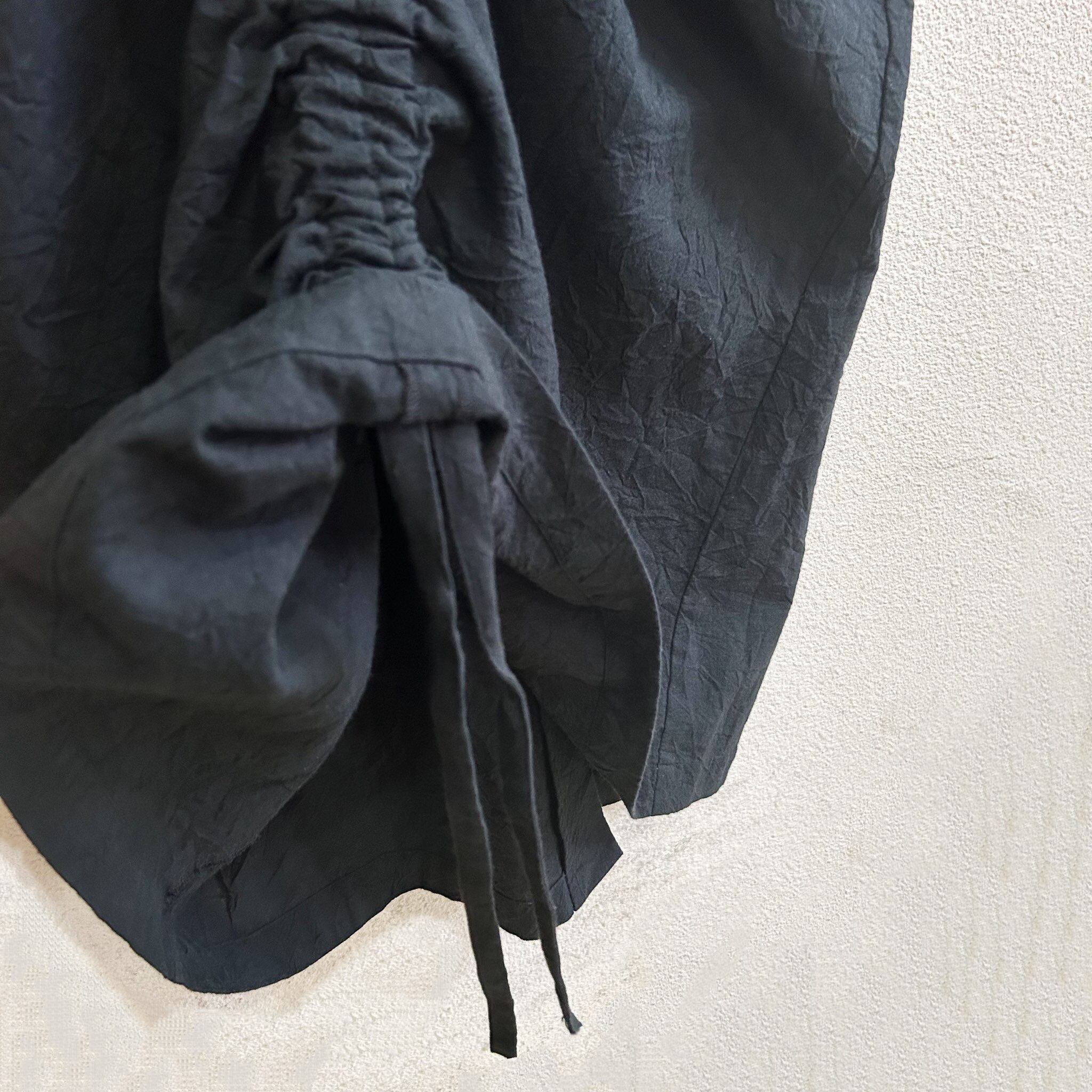 フロント部分にコードが入っていて、裾の形を自由に調節可能。