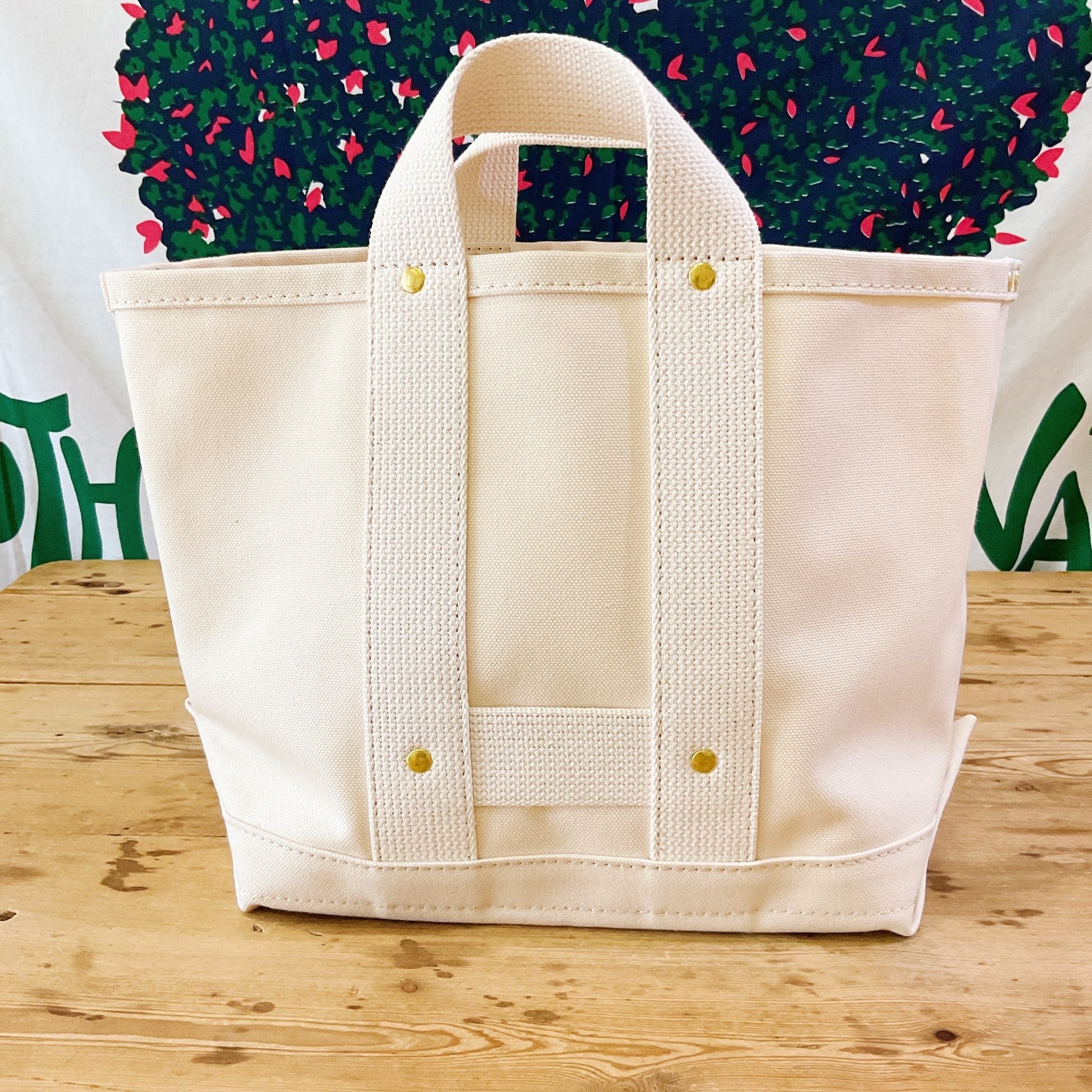 1940年代のアメリカン鉄道員バッグがインスピレーション。実際に使用されていたデザインは大変丈夫なつくりに、シンプルでありながら機能的。通常のトートバッグより持ち手が短いのは、ワーカーズバッグであるため、重いものをたくさん入れて運ぶことが前提のため。鉄道の鉄杭やネジなど重たく鋭角なものを多く入れて運んでいたゆえんです。撥水性のあるキャンバスは使用感、汚れなどが勲章となるワーキングバッグ。使い込むほどなじみがでるマイバッグとなります。